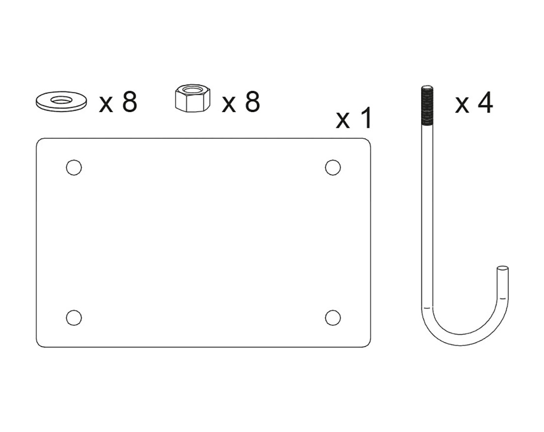 - Inhoud: sjabloonplaat, verankeringskrammen, verankerings-U, moeren en ringen